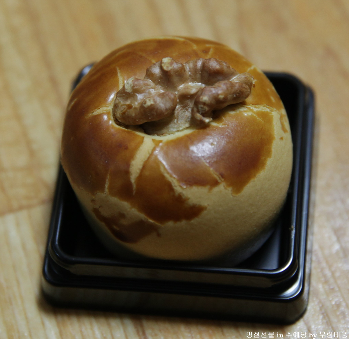 만주위에 호두가 올려져 있어요.