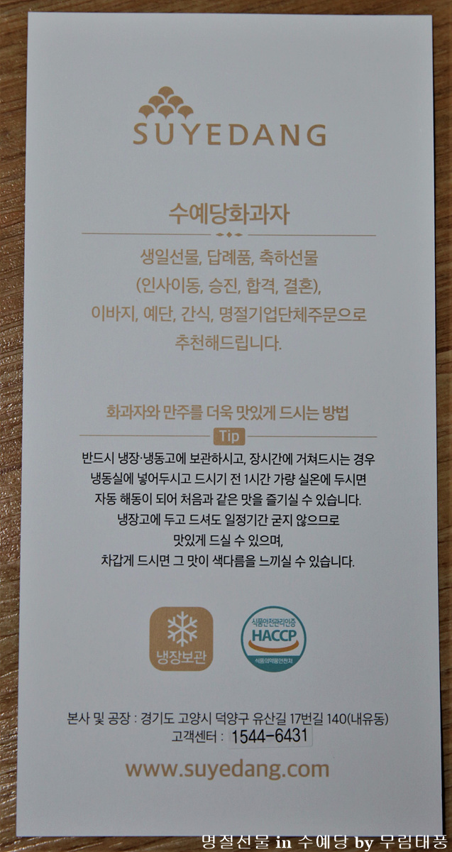 수예당 화과자는 냉장보관해서 드시면 좋아요.