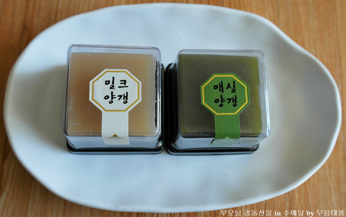 수예당 화과자의 밀크양갱과 매실양갱이에요